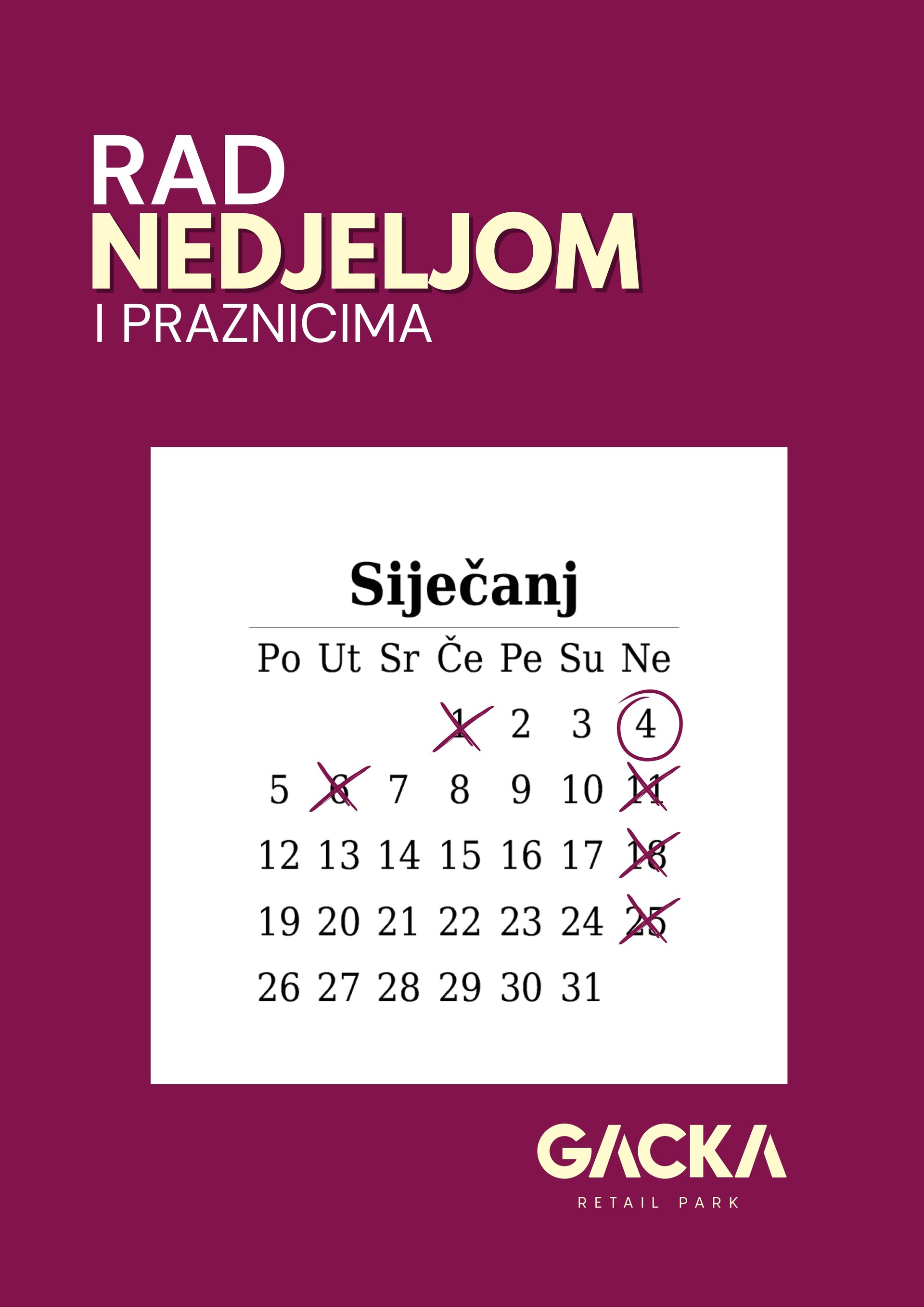 Kako trgovine rade nedjeljama i blagdanima u siječnju 2026. pogledajte ovdje: